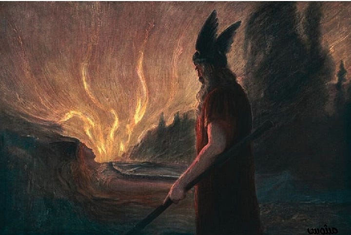 وينتهي أودين مقتولاً على يد الذئب فنرير ابن الإله لوكي في معركة نهاية العالم، وينتقم له ولده فيدار من قاتله.